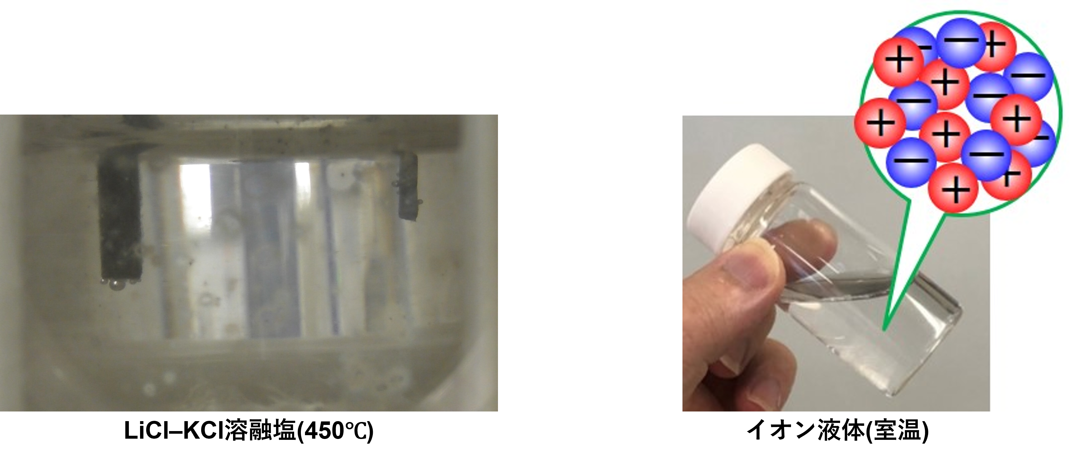 一般に、有機オニウムカチオン※と有機または無機アニオンと組み合わせると、常温付近で溶融する低融点の塩となる。このような塩を「常温溶融塩」あるいは「イオン液体」と呼ぶ。